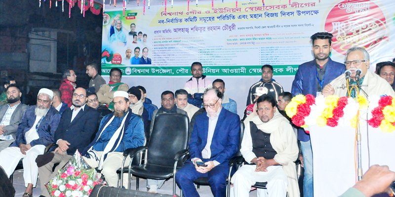 তিনি রোববার (১ জানুয়ারী) সন্ধ্যায় বিশ্বনাথ পৌর শহরের নতুন বাজারস্থ সিএনজি স্ট্যান্ডের সামনে ‘বিশ্বনাথ পৌর ও ইউনিয়ন স্বেচ্ছাসেবক লীগের নব-গঠিত কমিটিগুলোর পরিচিতি এবং মহান বিজয় দিবস উপলক্ষে’ আয়োজিত আলোচনা সভায় প্রধান অতিথির বক্তব্যে একথাগুলো বলেন। উপজেলা, পৌর ও ইউনিয়ন স্বেচ্ছাসেবক লীগের যৌথ উদ্যোগে আয়োজিত আলোচনা সভা শেষে মধ্যরাত পর্যন্ত এক মনোজ্ঞ সাংস্কৃতিক অনুষ্ঠান অনুষ্ঠিত হয়। সভায় প্রধান বক্তার বক্তব্য রাখেন জেলা স্বেচ্ছাসেবক লীগের সভাপতি আলহাজ্ব আফসার আজিজ।