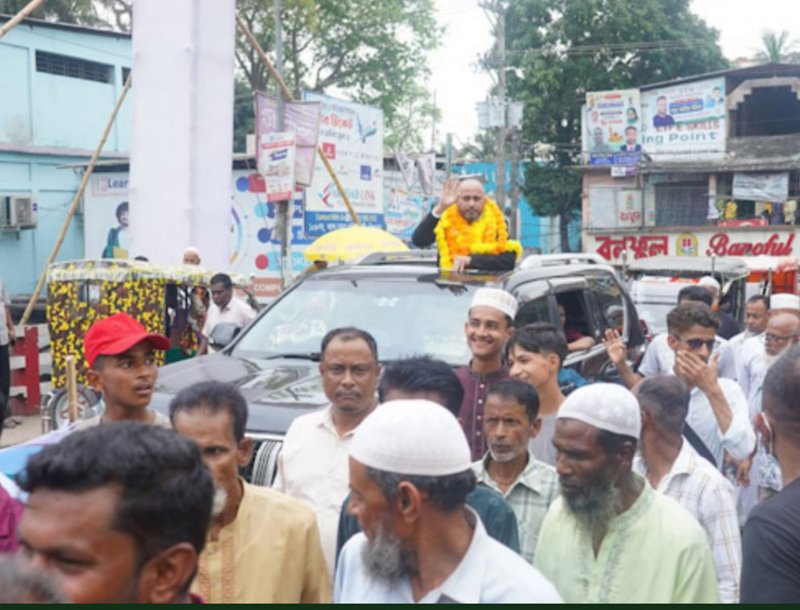 দুপুর ২টার দিকে সিলেট ওসমানী আন্তর্জাতিক বিমানবন্দর থেকে রওয়ানা দিলে বিভিন্ন শ্রেনী পেশার বিপুল সংখ্যক সাধারণ মানুষ ও তাঁর সমর্থকরা রশিদপুর পয়েন্টে তাকে স্বাগত জানান। পরে সেখানে ফুলেল সংবর্ধনা শেষে শতাধিক মোটরসাইকেলের বহরে তাকে বিশ্বনাথ পৌর শহরে নিয়ে আসা হয়। শোভাযাত্রাটি পৌর শহরের বিভিন্ন গুরুত্বপূর্ণ সড়ক প্রদক্ষিণ করে বাসিয়া সেতরে পূর্ব পাশে এসে পথসভায় মিলিত হয।